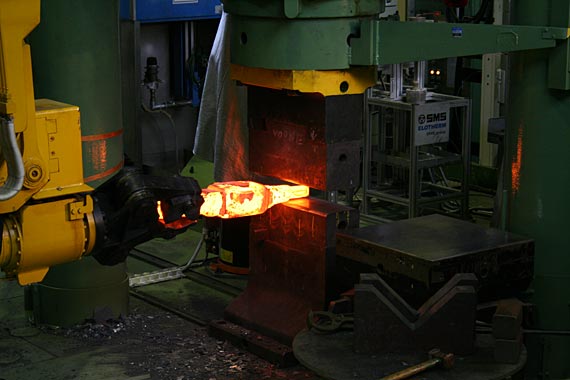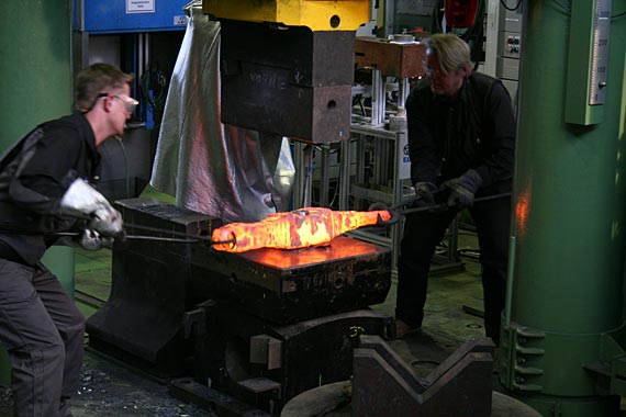 | Geschmiedet wurde an einer 630 Tonnen Ölhydraulischen Schmiedepresse in Zwei-Säulen-Bauart |