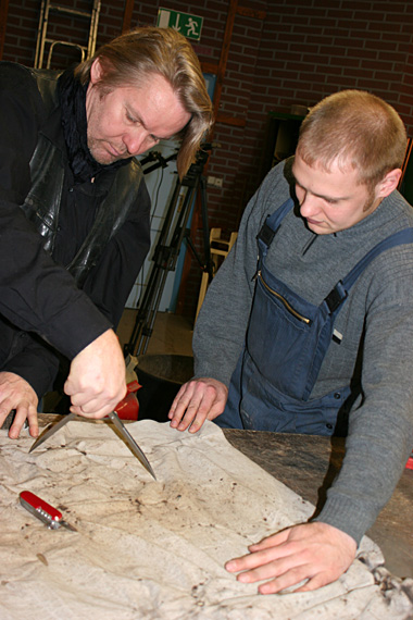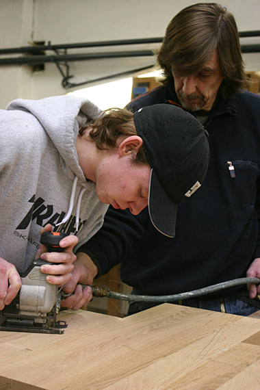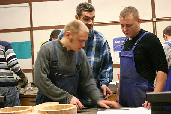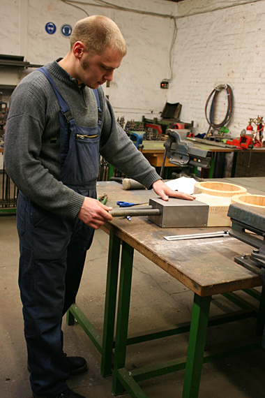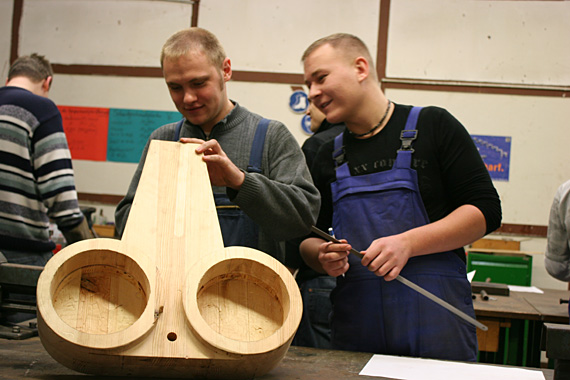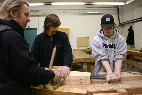 In der Holzwerkstatt der SEW Hannover entsteht ein Blasebalg nach afrikanischem Vorbild.