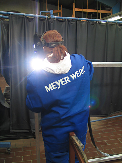 Die Achsen müssen ca. 3,5 Tonnen tragen, gedreht wurden sie in der Meyer-Werft.